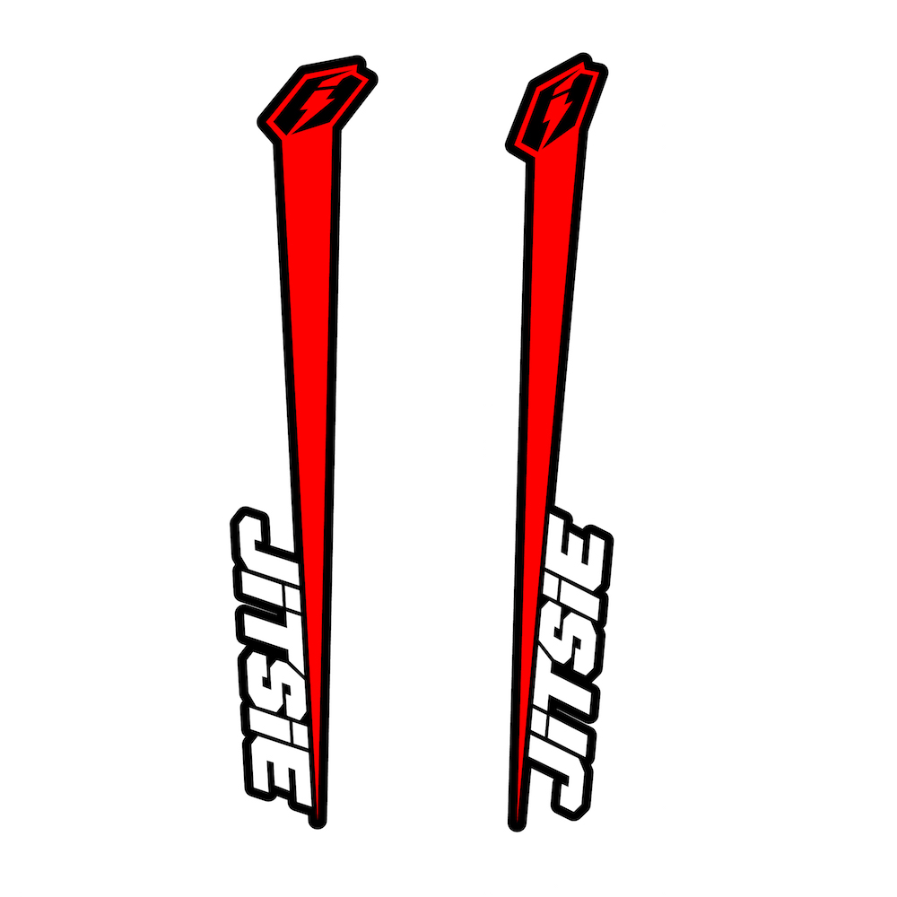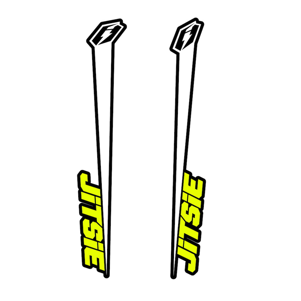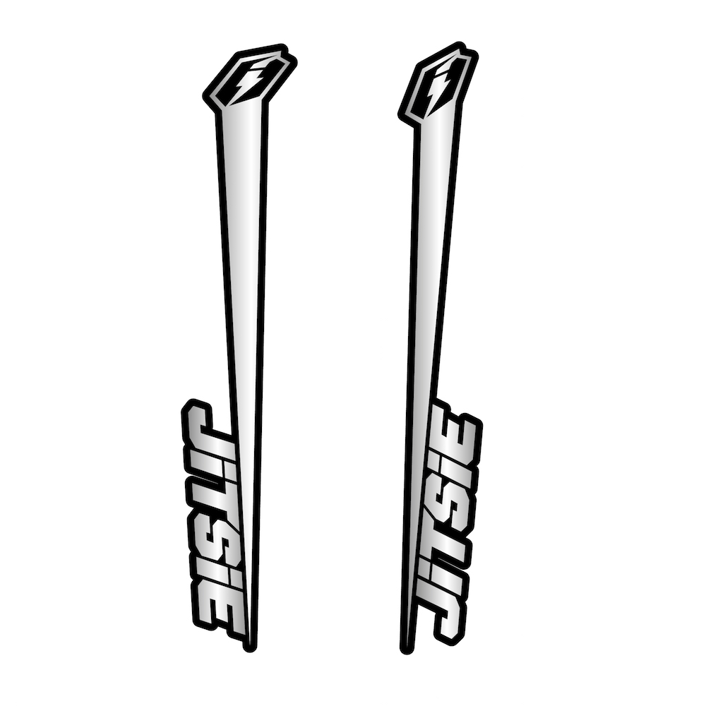 The Jitsie Varial fork stickers are a streamlined decal set designed exclusively for the front fork of your Varial bike. Featuring a stylish, generic design with bold Jitsie branding, these stickers refresh your fork’s appearance or replace worn graphics with ease.