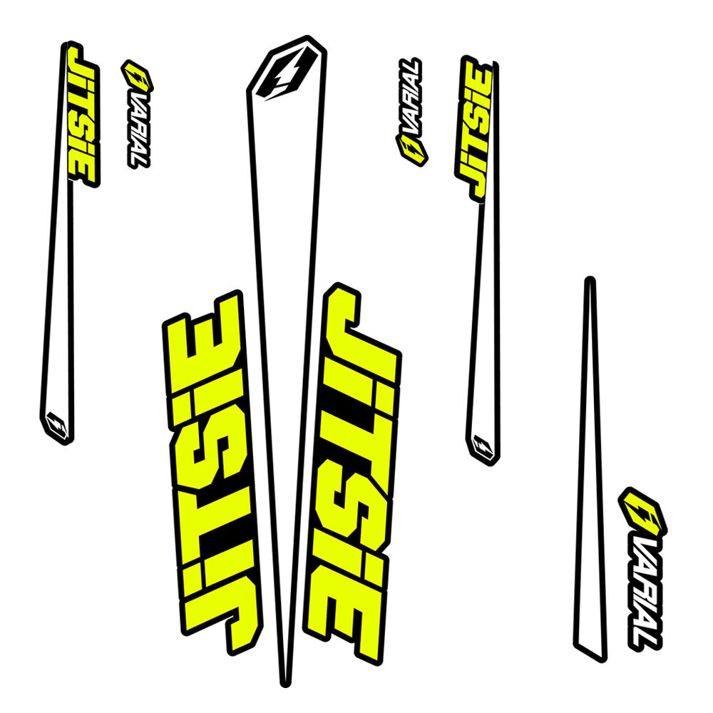 The Jitsie Varial 18/20/24/26″ frame sticker kit is the complete decal set for your Varial frame. Whether you’re refreshing your bike’s look or replacing damaged decals after rides, this kit ensures your Varial bike returns to full visual spec. All original graphics are included in one easy package.