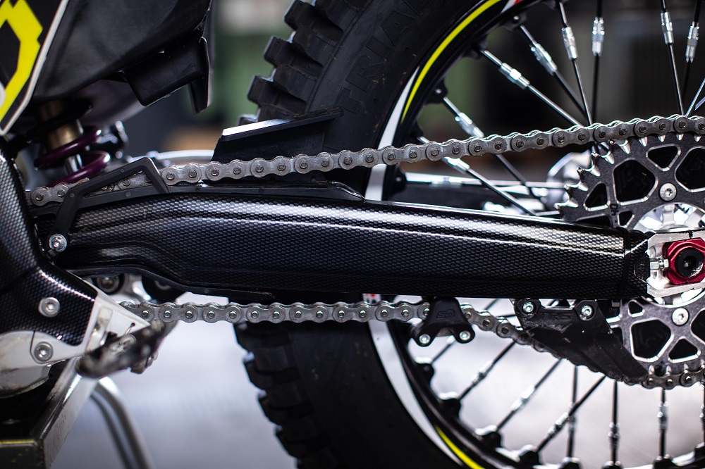 The Jitsie swingarm protectors prevent the swingarm from getting scratched or damaged during a crash or while riding.