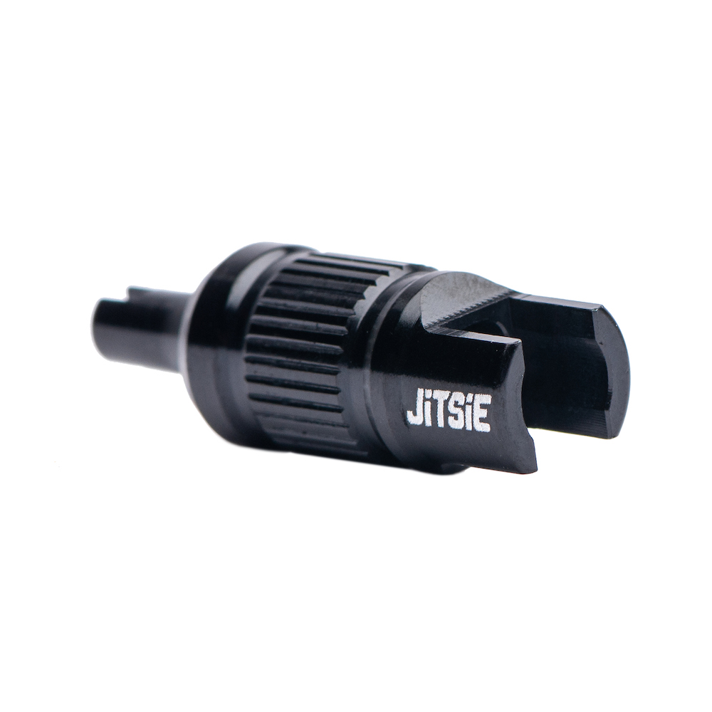 The Jitsie tyre valve tool is a compact and practical tool designed to install or remove valve cores quickly and easily. Small enough to carry in your toolbox or pocket, it’s an essential item for every trials rider.