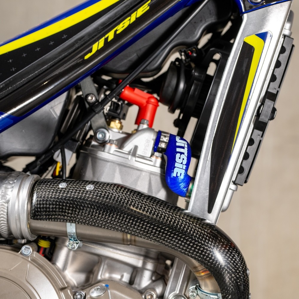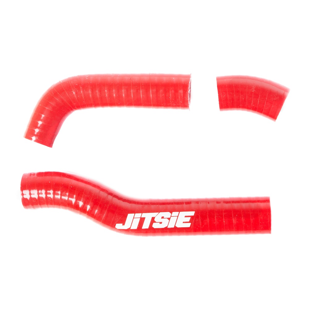 Jitsie silicone water hoses are designed to replace the standard rubber radiator hoses on trials motorcycles. Manufactured from high-quality silicone and reinforced with three layers of polyester, they provide superior heat resistance, durability, and reliability compared to OEM hoses. Whether for competition or regular riding, these hoses ensure consistent cooling performance and add a factory look to your bike.