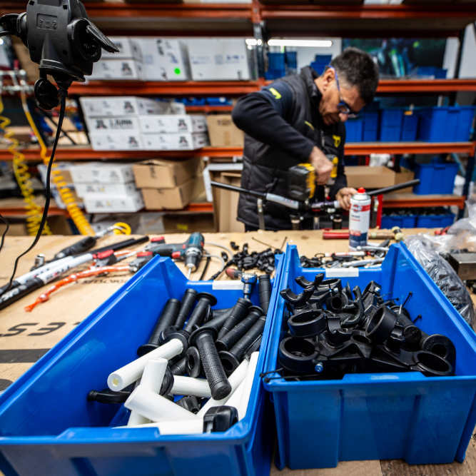 Founded in 2013, TRS is a young company in full expansion with seven times trials World champion Jordi Tarres being one of the driving forces. Since the launch of the first TRS One motorcycle in 2015, the brand has grown rapidly and there are quite a few models available now in its range. We headed to the small town of Sant Pedor near Barcelona for a sneek-peak behind the scenes of TRS, in order to find out what it takes to build a trials motorcycle.